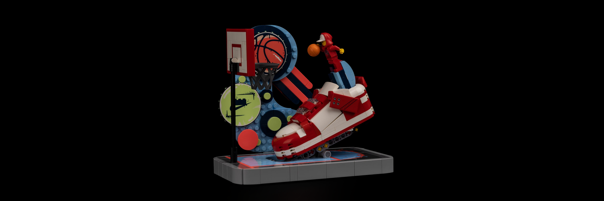 Craft a vibrant graffiti background, bold basketball hoop, and the iconic Nike Dunk low-top in its original red colorway — now enhanced with LEGO LED Lights for added swagger. Light up the graffiti wall, illuminate the hoop rim, and spotlight the sneaker like it’s on center stage.
