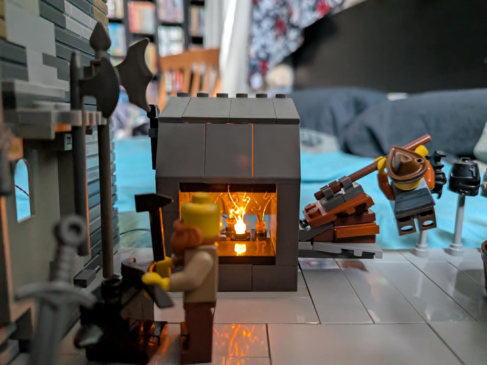 I haven't finished the set up, but the effect they have created in a dingy dungeon, a roaring log fire and the Blacksmith's forge is spectacular.