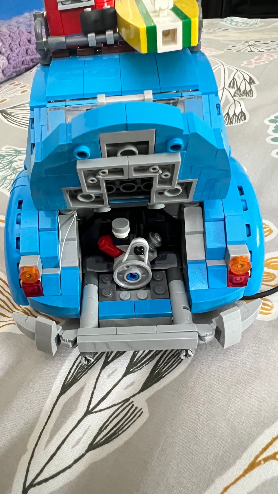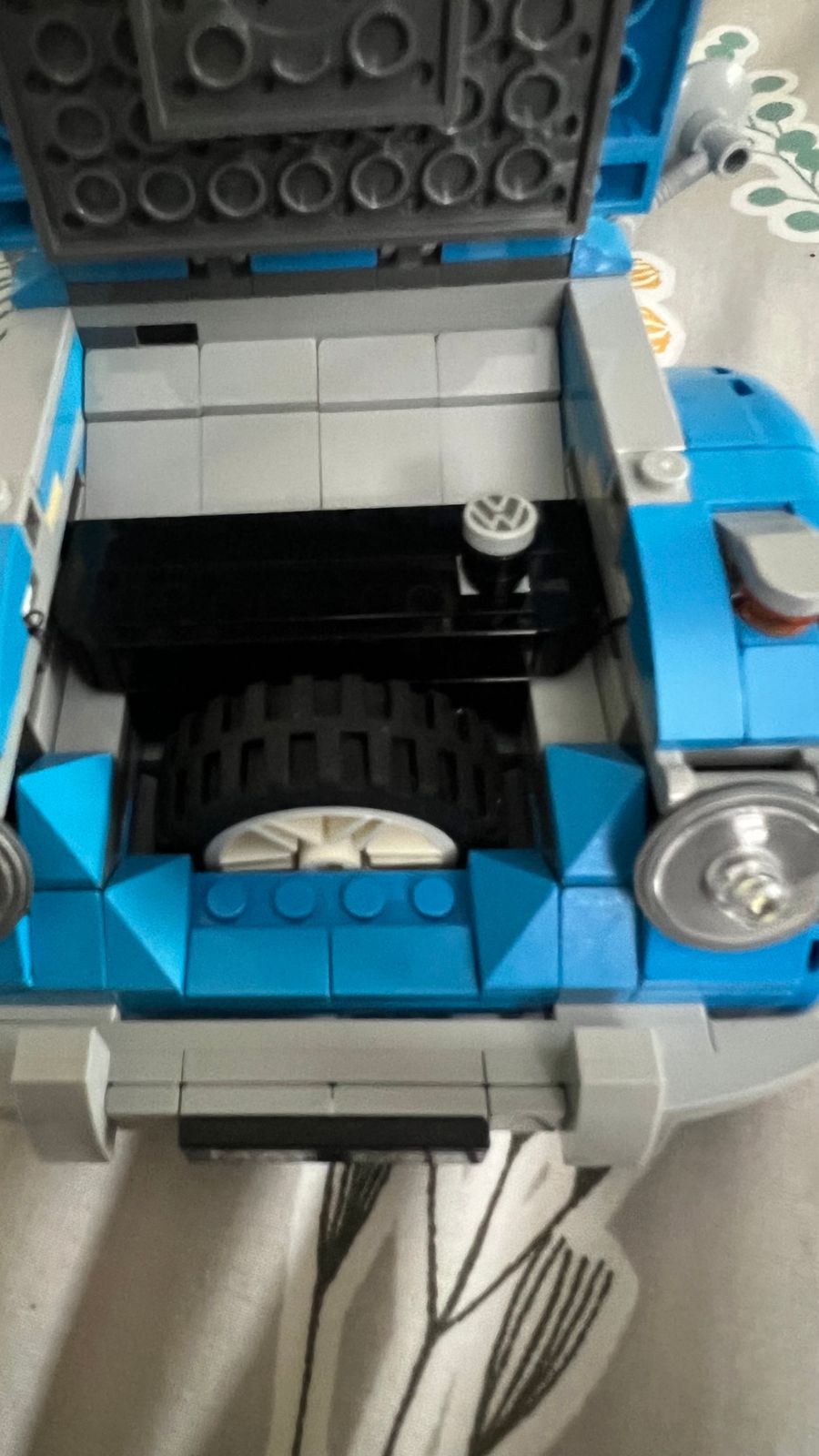 LEGO Volkswagen Beetle 10252 model is detailed with some realistic elements and special features including curved fenders, Volkswagen logo, fuel tank, azure-blue color scheme, an authentic air-cooled engine (4-Cylinder), and a flat windshield that will make you rebuild the distinctive Volkswagen Beetle. In the interior lies a steering wheel and dashboard, beige-colored, and seats that tilt forward. On the roof, you will find a removable cooler box and a surfboard. This LEGO car set was created to offer you a challenging building experience that comes with a reward with a nostalgic touch. Get our LEGO LED Lights to compliment your LEGO 10252 Volkswagen Beetle.