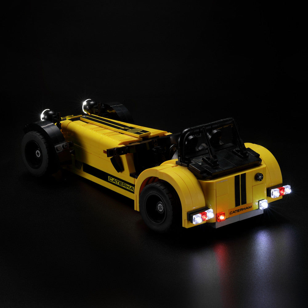 Accelerate into the world of classic sports cars with the LEGO Caterham Seven 620R. Crafted to perfection, this set captures the sleekness and prowess of the iconic Caterham Seven 620R. Every brick and feature, from the removable engine to the meticulously designed boot, stands as a testament to the fusion of passion for cars and LEGO craftsmanship. When kissed by the LEGO Lights, the model's intricate details and design intricacies come to life, making it a centerpiece for both LEGO enthusiasts and automobile aficionados.