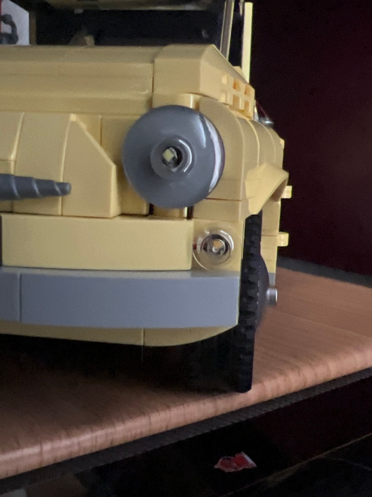 Considering the age of the original vehicle maybe 'warm white' would be a better colour choice for the headlights (like the London Bus) but still it is a great addition to her vehicle collection..