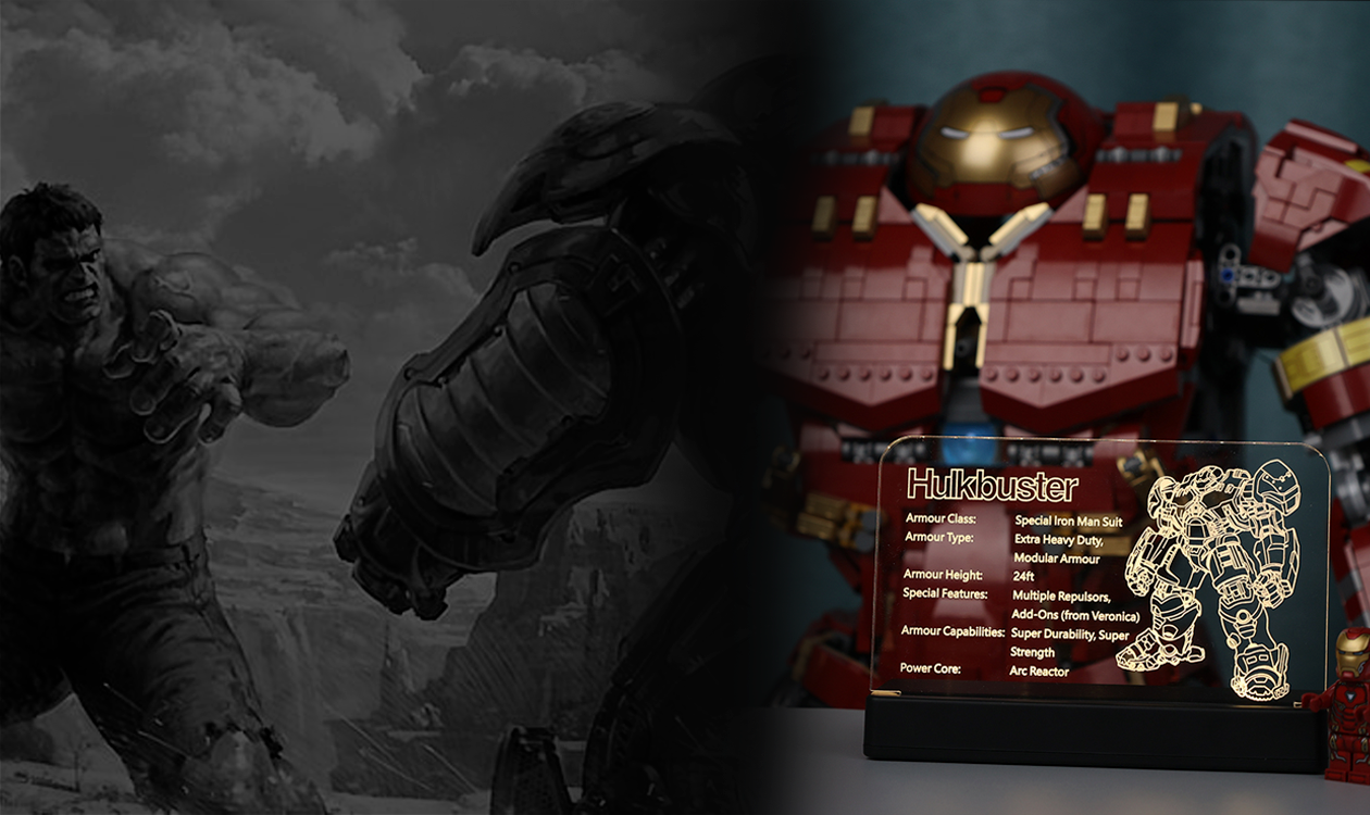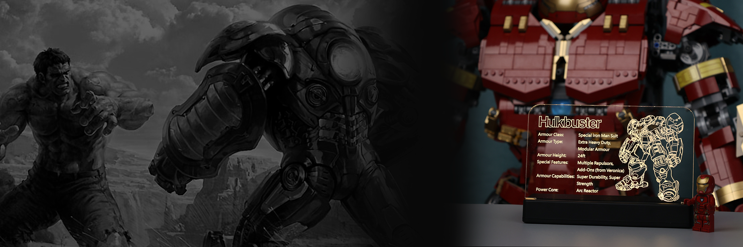 Make your LEGO Hulkbuster 76210 look mouthwatering while being displayed by using our awesome LED Nameplates.