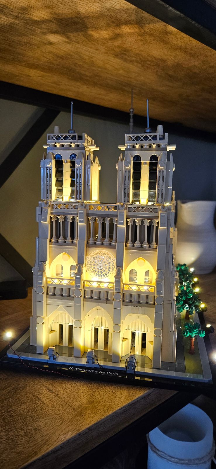 Add the nameplate to complete a striking centerpiece. The illuminated Notre-Dame model stands out in any collection, showcasing its grandeur and historical significance.
