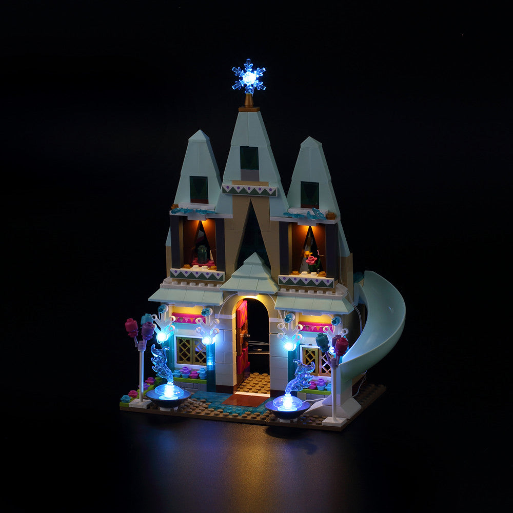 The castle with lights is more realistic and admired by all ages - its well worth the time weaving and securing the LED light kit as shown in the cleary demonstrated instructions - if you were to encounter any issue, the support team at Game of Bricks will respond efficiently and informatively - we are converts now to the range of lego light kits available and the Nameplates are a novel idea!