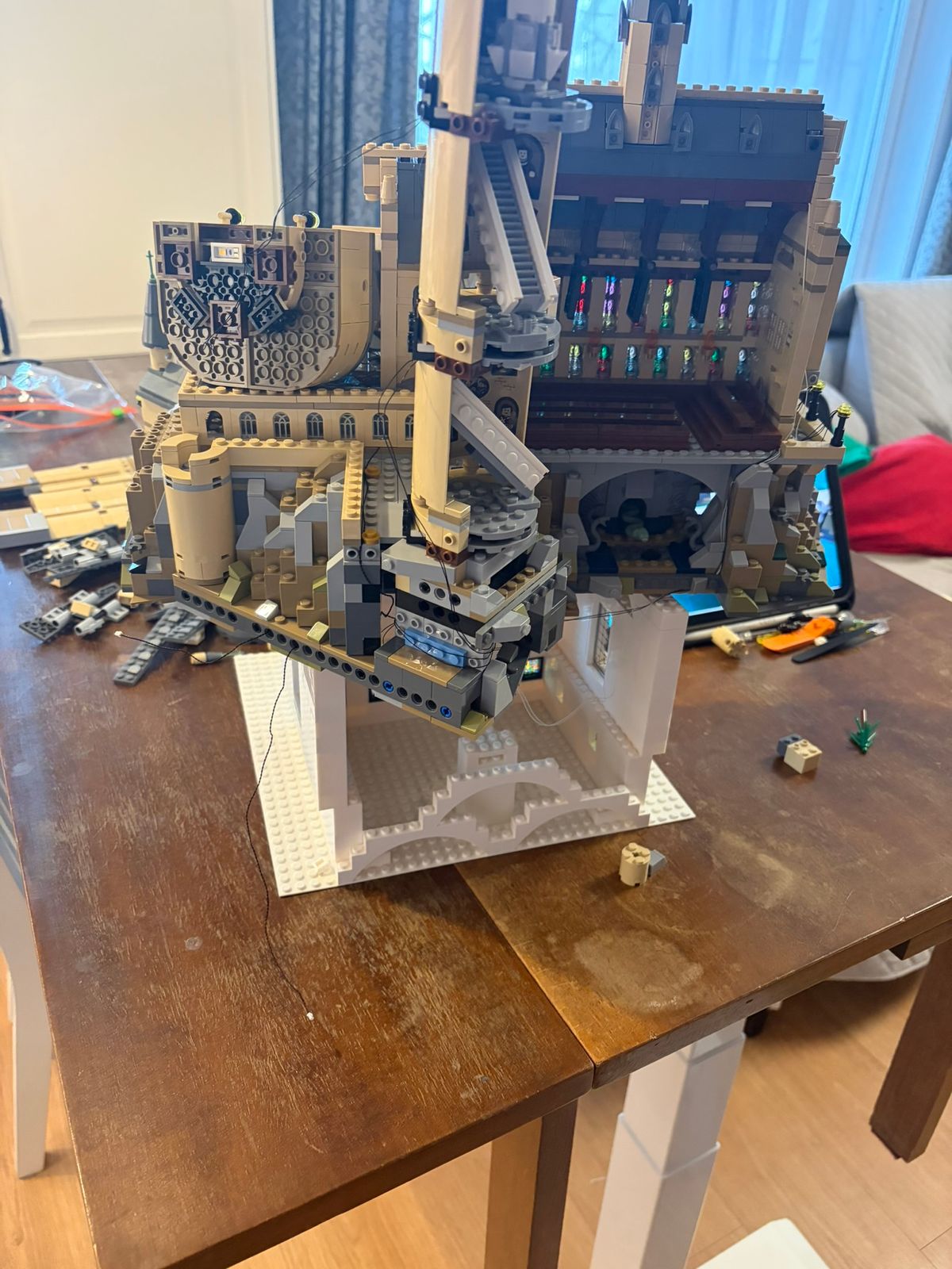 Let me start by saying that this lighting is worth every penny! But... it's not an easy task; it requires patience and perseverance. The photos in the instructions aren't accurate, sometimes you have to guess. Furthermore, two photos are mixed up (from different sets), and sometimes you have to lift the whole thing, making it nearly impossible without additional support (my tower fell twice). But after much cursing and hardship, I succeeded, and it was worth it. The magic this lighting creates is indescribable. (and at the end one LED didn't light up - the cable was broken... luckily it was repaired)
