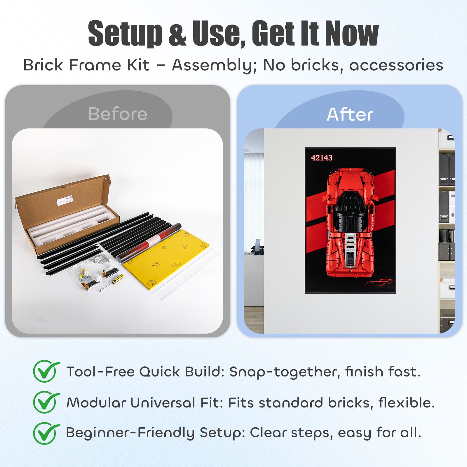 Showcase the LEGO Technic Ferrari Daytona SP3 42143 with our Premium Wall-Mount Display Frame, elevating this Prancing Horse masterpiece into a symbol of pure Italian racing soul.
