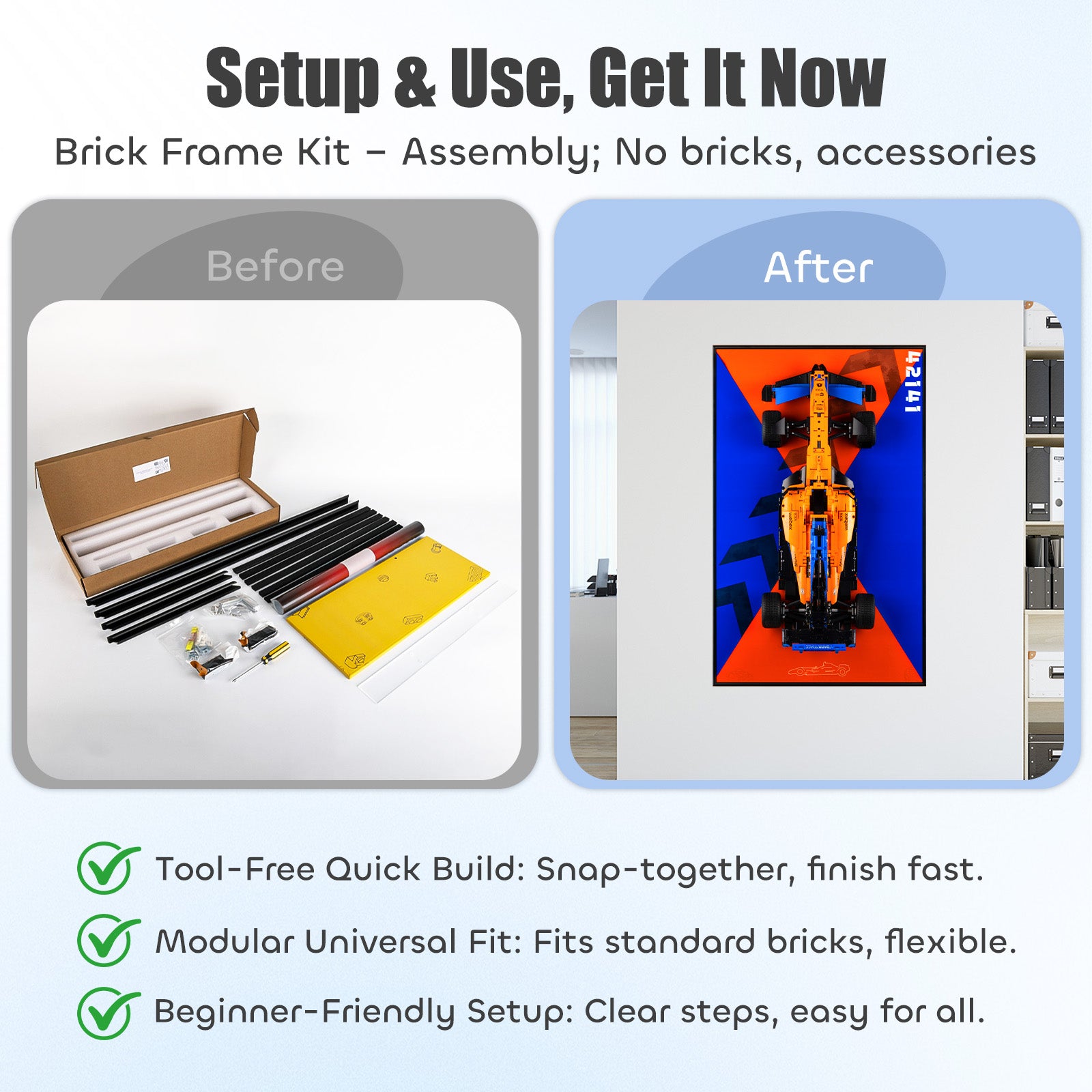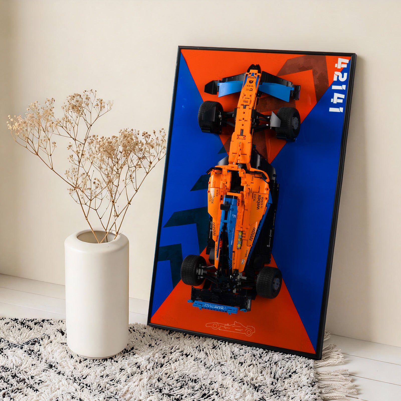 Present the LEGO Technic McLaren Formula 1 Race Car 42141 with our Premium Wall-Mount Display Frame, capturing the thrill of elite racing in dynamic, elevated form.