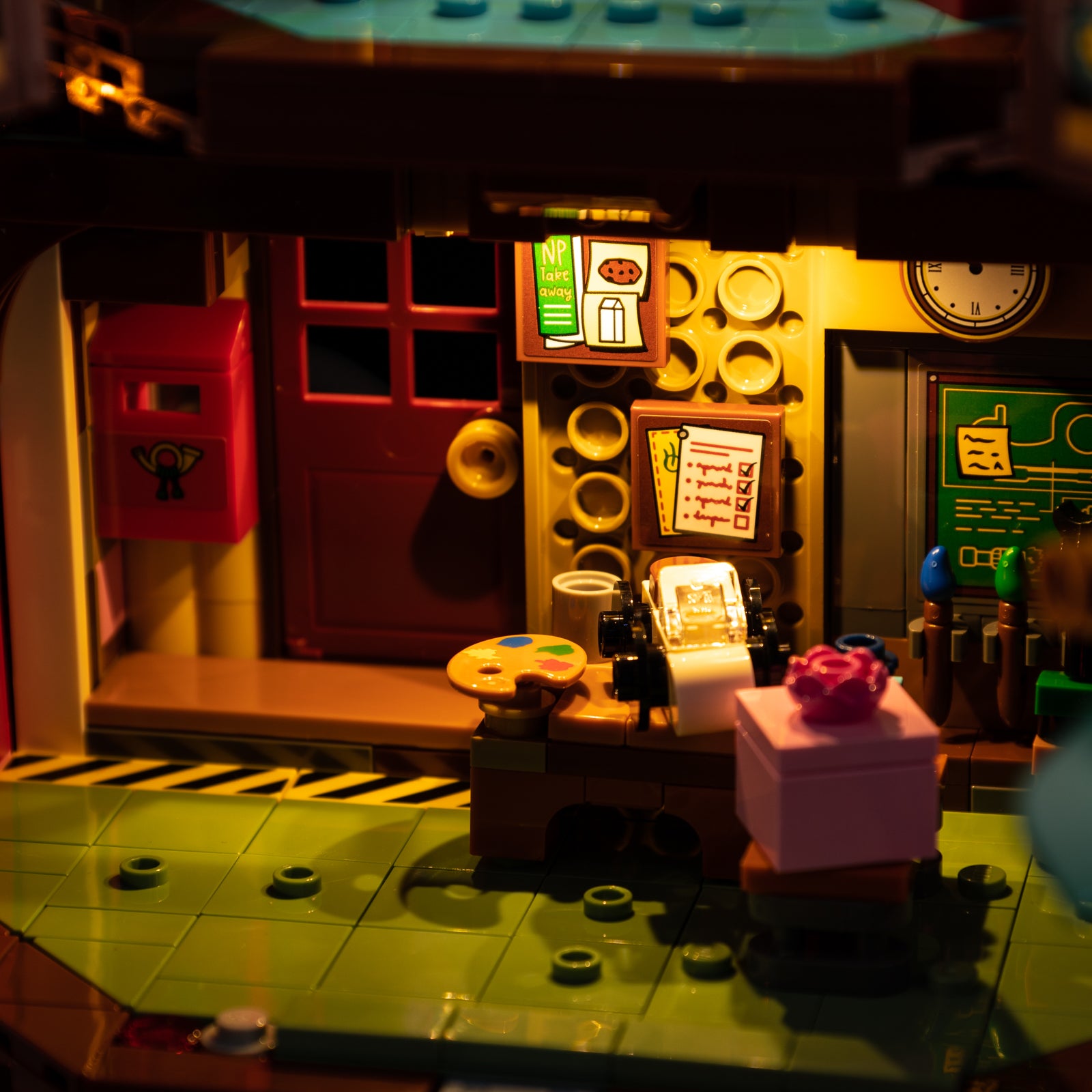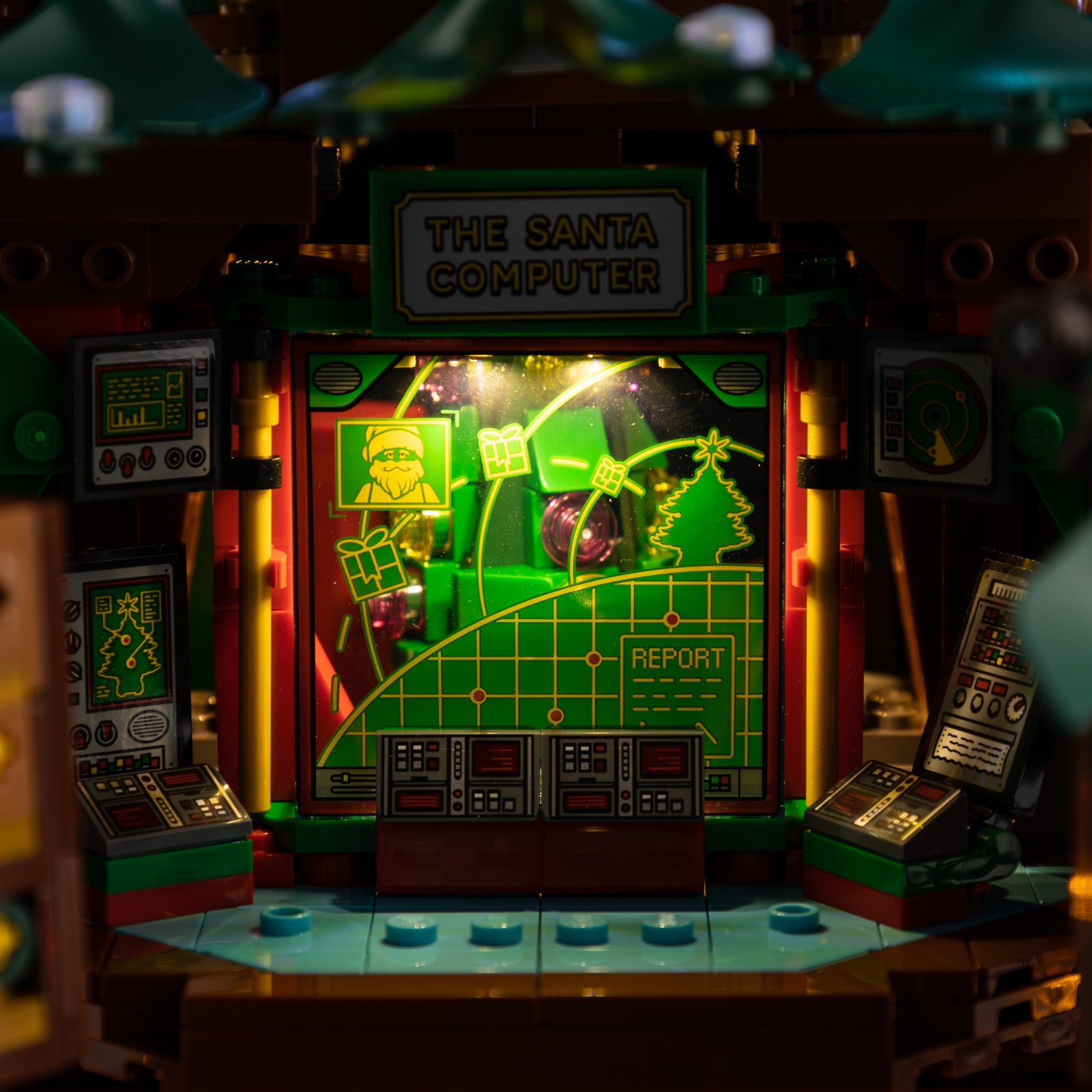 Inside this beautifully decorated tree lie four hidden rooms—a kitchen, Santa’s workshop, a canteen, and an entertainment room for the elves. Carefully placed interior LEGO lights make each scene sparkle like holiday magic, revealing every detail with cozy warmth.