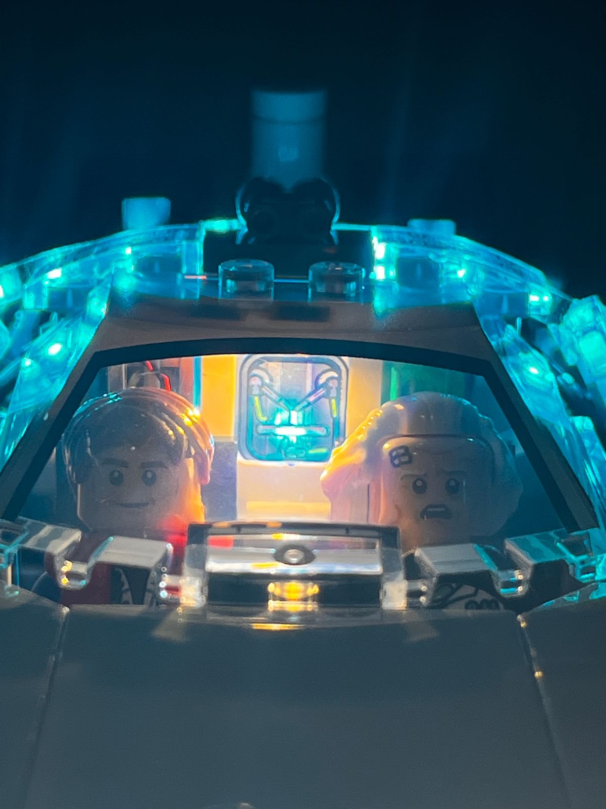 Place the included minifigures inside the lit cockpit and recreate your favorite moments. Whether you’re channeling 1955 or 2015, this display piece tells a story — with lights.