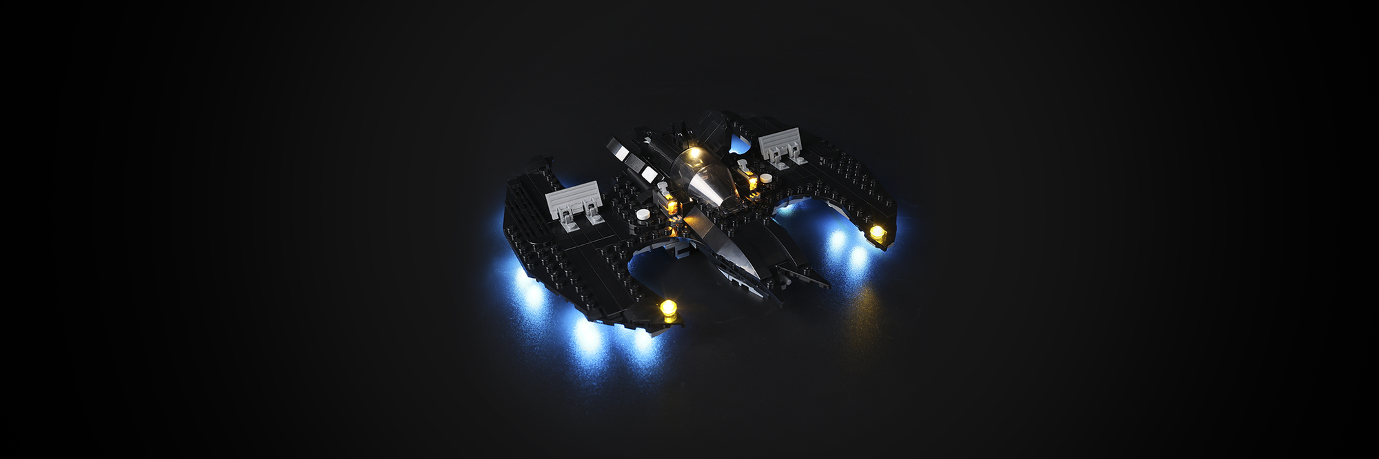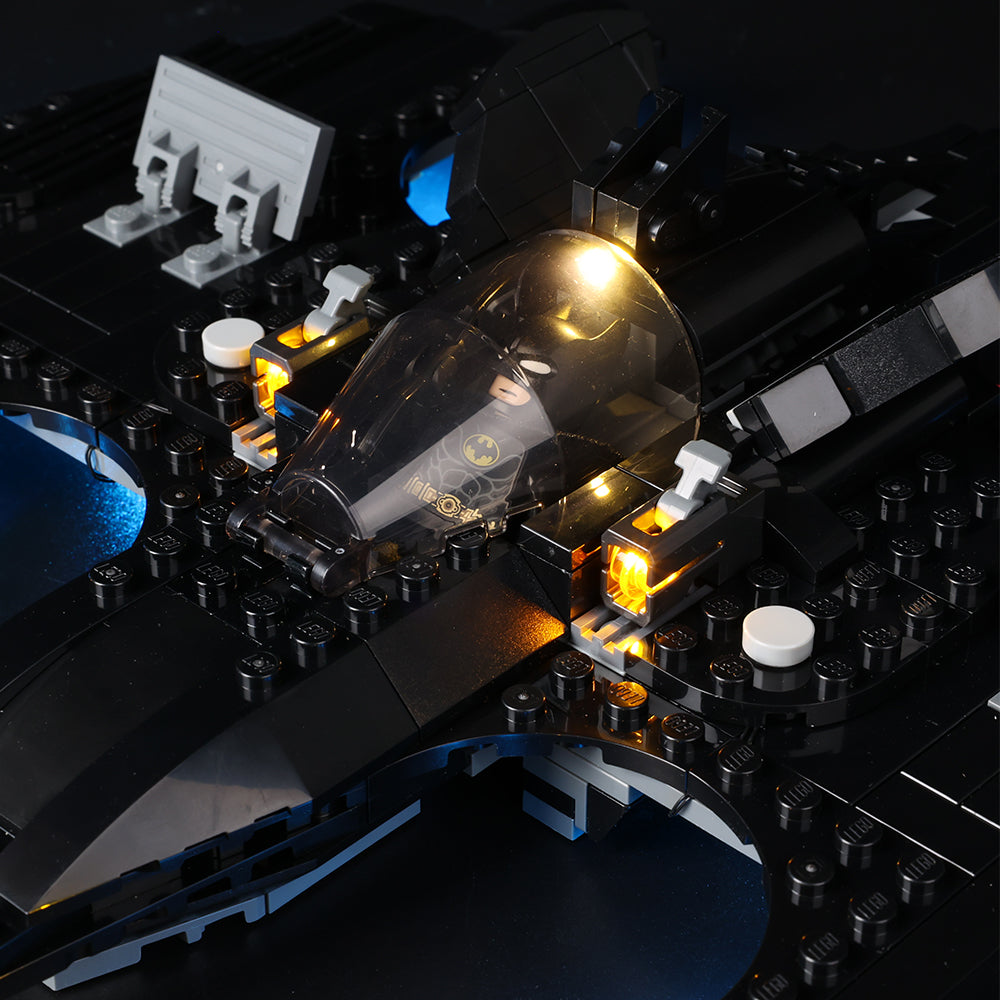 Batman's iconic sky vessel, enhanced with LEGO LED lights