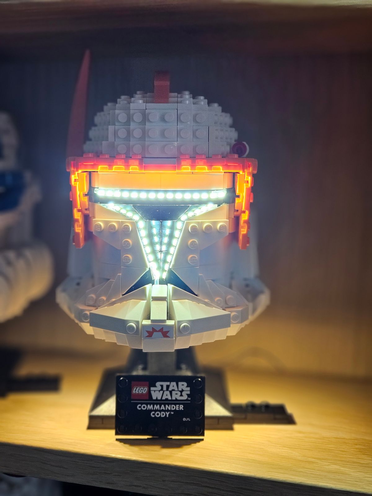 My whole helmet collection is lightened up, so Commander Cody could not be left behind! The lightning set is easy to install and sometimes the instructions are a bit unclear, but with some logical thinking I managed.