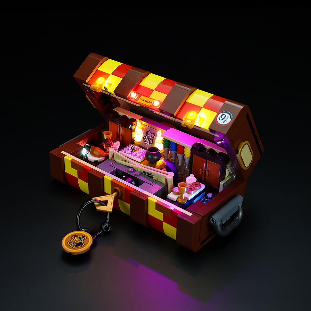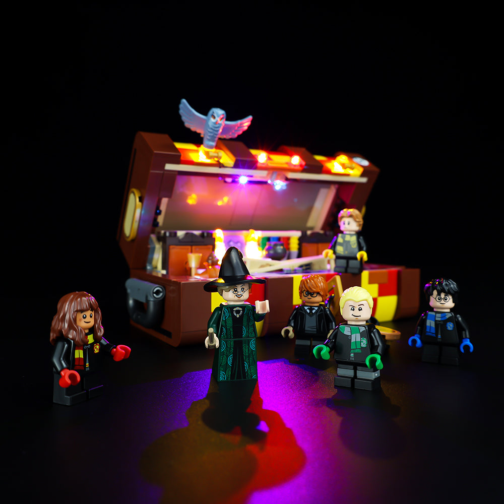 Kids may customize this LEGO brick version by adding different Hogwarts House colors and entertaining stickers, just like the iconic Hogwarts students' trunks. A huge selection of Minifigure pieces – including a variety of hair and skin tones – are included in the package, allowing kids to create up to five characters from the Harry Potter films and create their own Hogwarts pupils. A large range of customizable furniture and accessories from the films provide ideas and inspiration for children to create their own Hogwarts adventures. The Sorting Ceremony, a Great Hall feast, and the Common Room are among the famous movie stories to be acted out. When the action is over, everything fits neatly in the trunk, allowing schoolchildren to bring Hogwarts magic with them wherever they go. Experience magic in a different dimension by building the LEGO Hogwarts Magical Trunk 76399 set. Make it glow with our amazing LEGO LED Lights.
