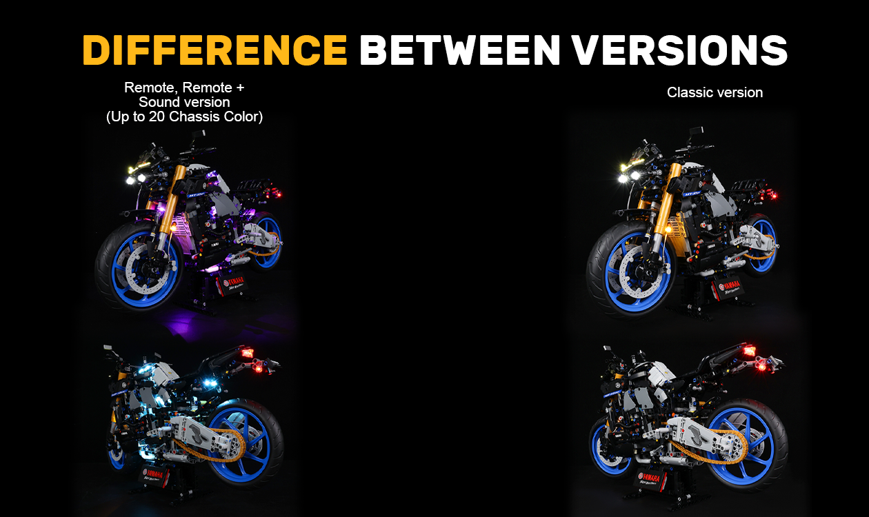 Rev up your creativity and hit the open road with the sleek LEGO Yamaha MT-10 SP 42159. Assemble this high-performance motorcycle and ignite your passion for speed and precision. Infuse your collection with energy, craftsmanship, and the spirit of the race with this LEGO engineering marvel, brilliantly enhanced with our custom LEGO Lights.