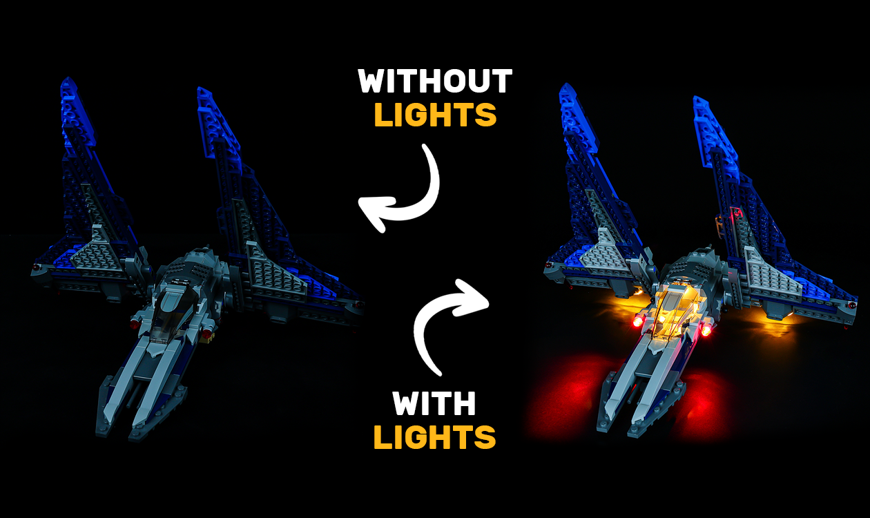 Fans around the globe, both young and old, can now relive the thrilling action that was featured in the Star Wars film titled "The Clone Wars" with the LEGO Mandalorian Starfighter 75316 set. Its authenticity and attention to detail make your role-play more memorable and adventurous. Beautify this set with our shiny LEGO Lights to make it look brilliant.