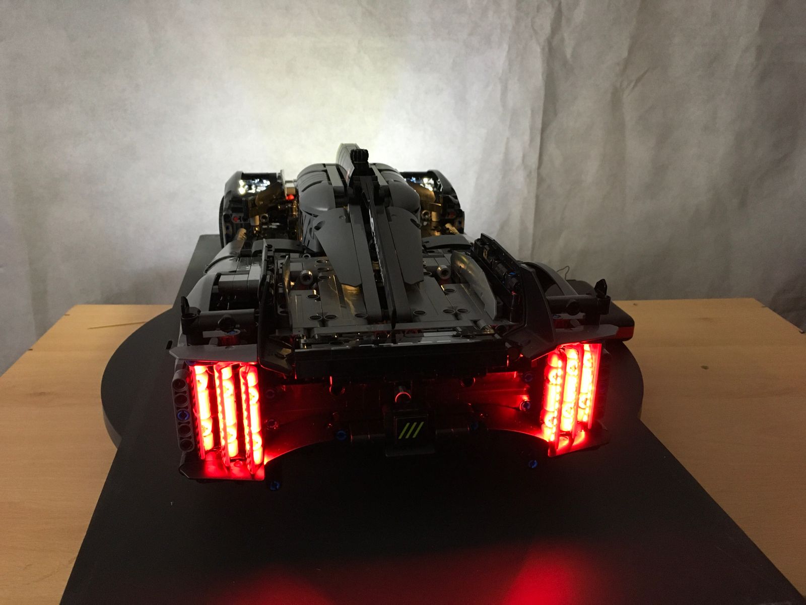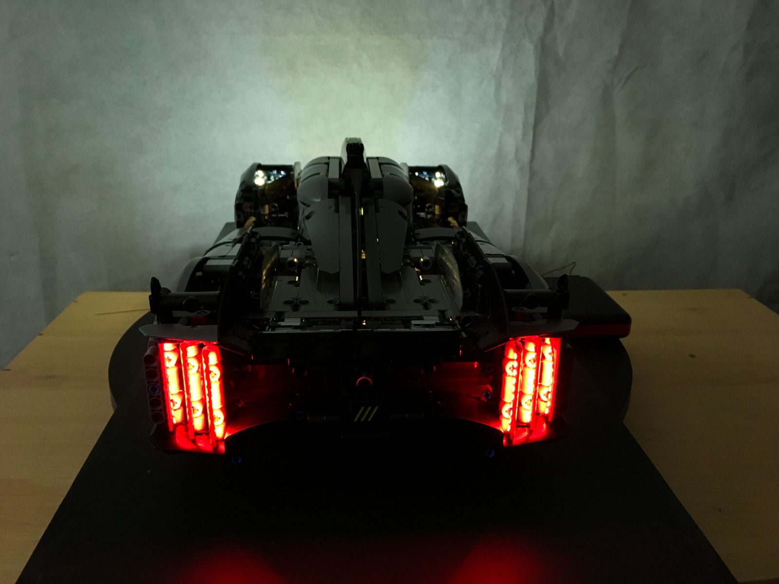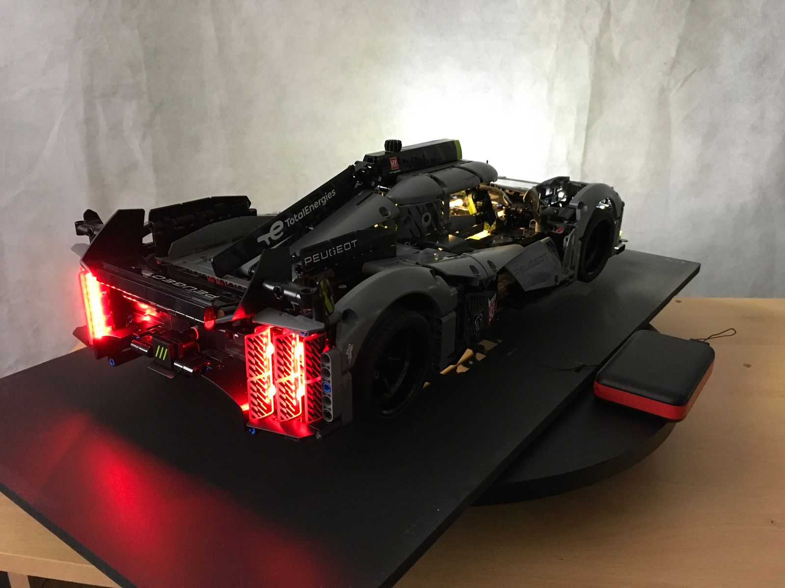 The set also includes LEGO Technic light elements that glow in the dark, bringing the atmosphere of a real 24-hour race to life.