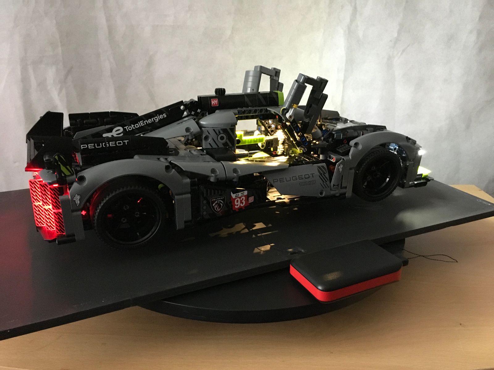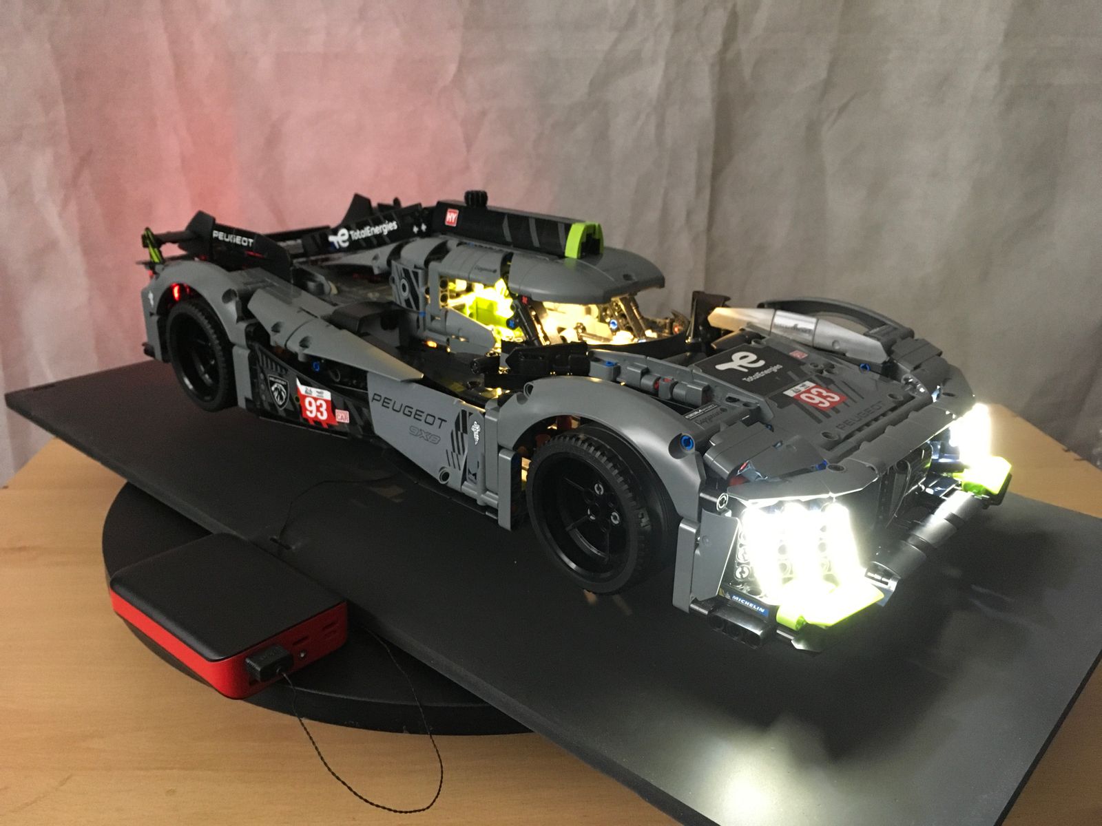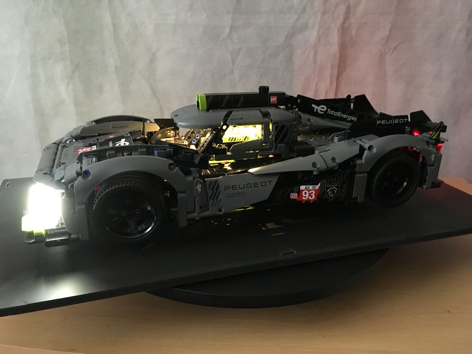 The set also includes LEGO Technic light elements that glow in the dark, bringing the atmosphere of a real 24-hour race to life.
