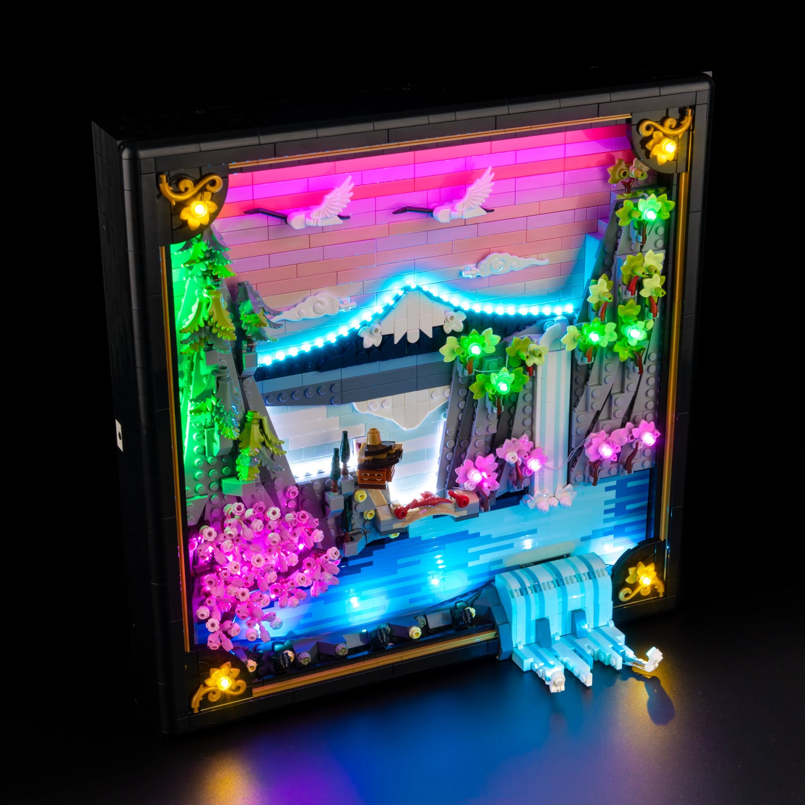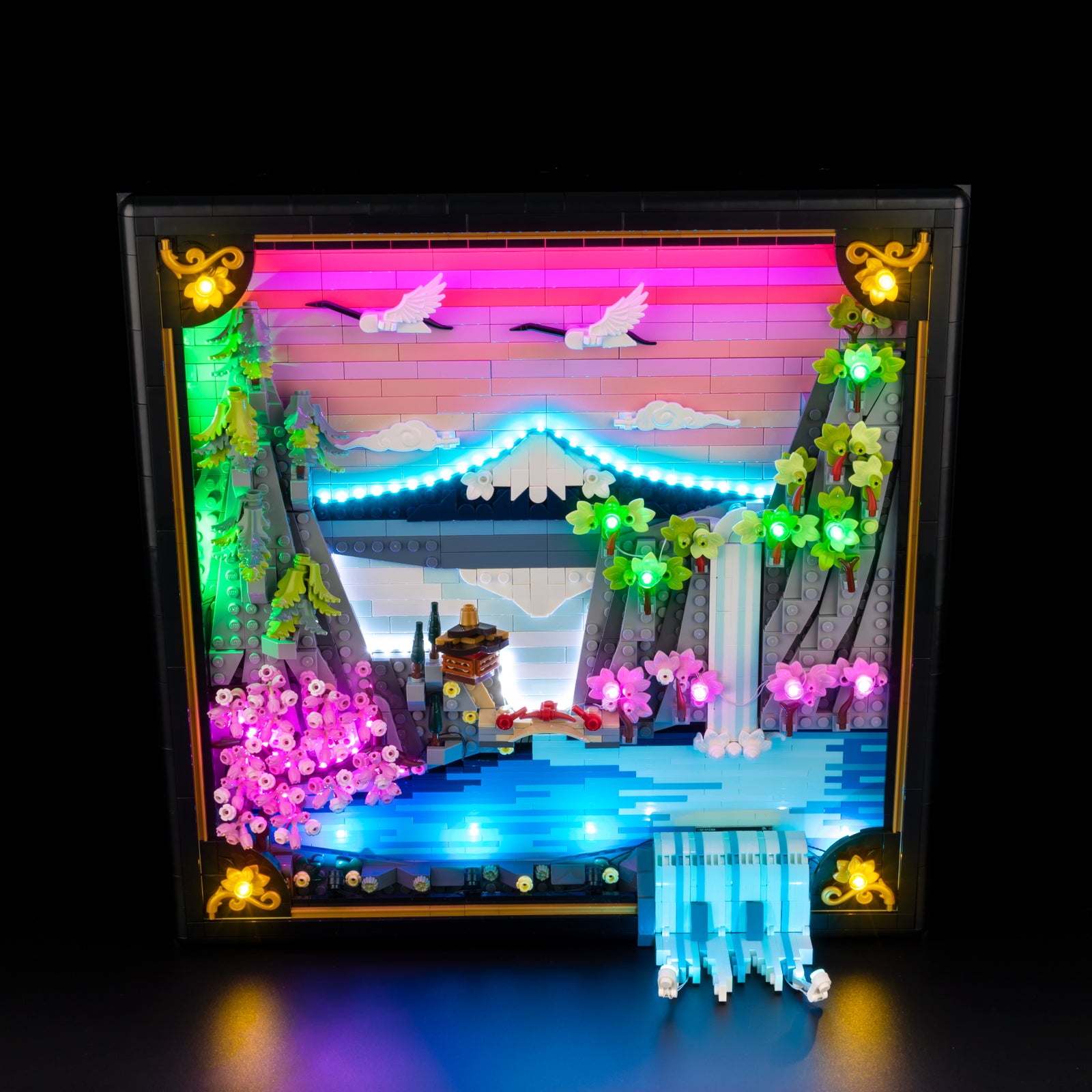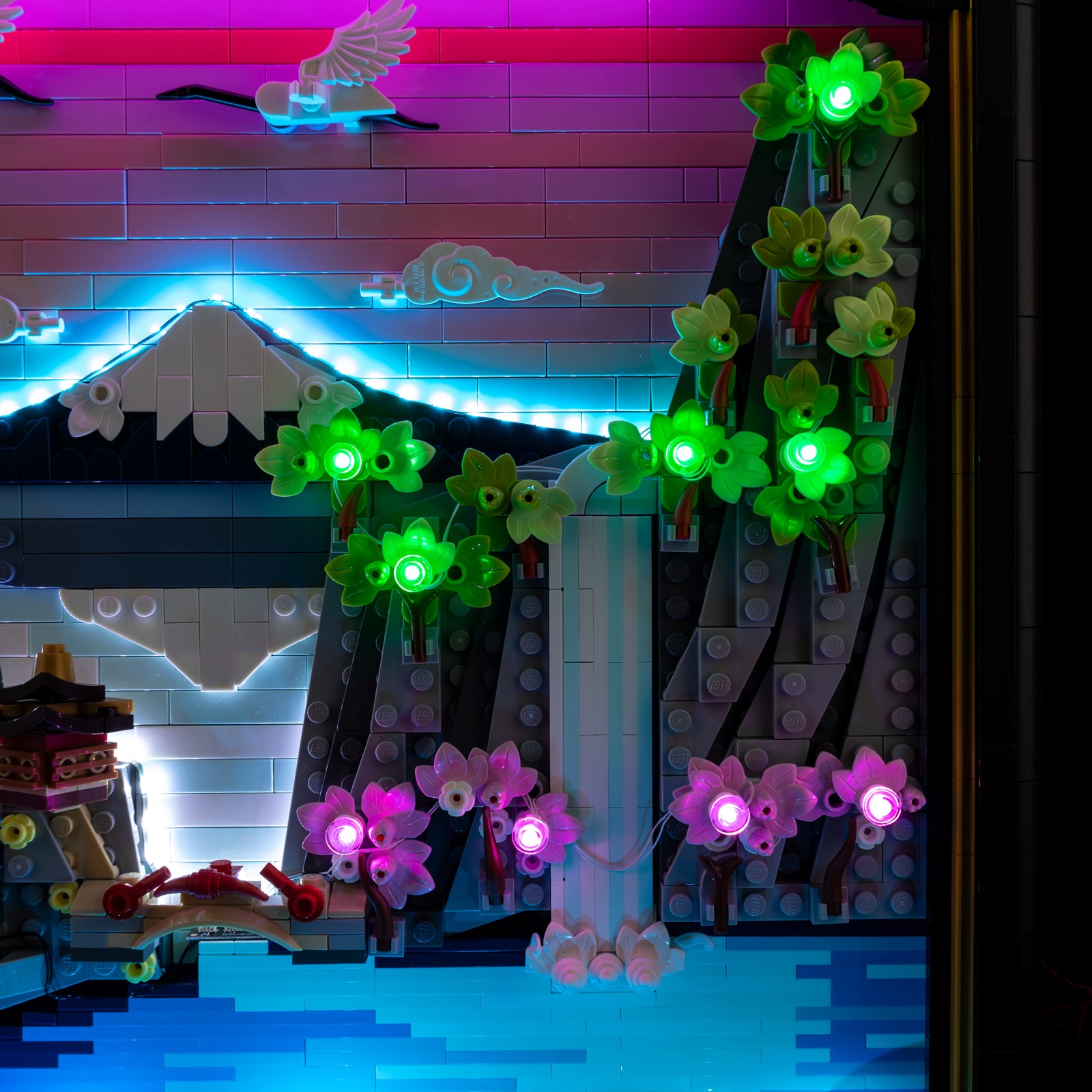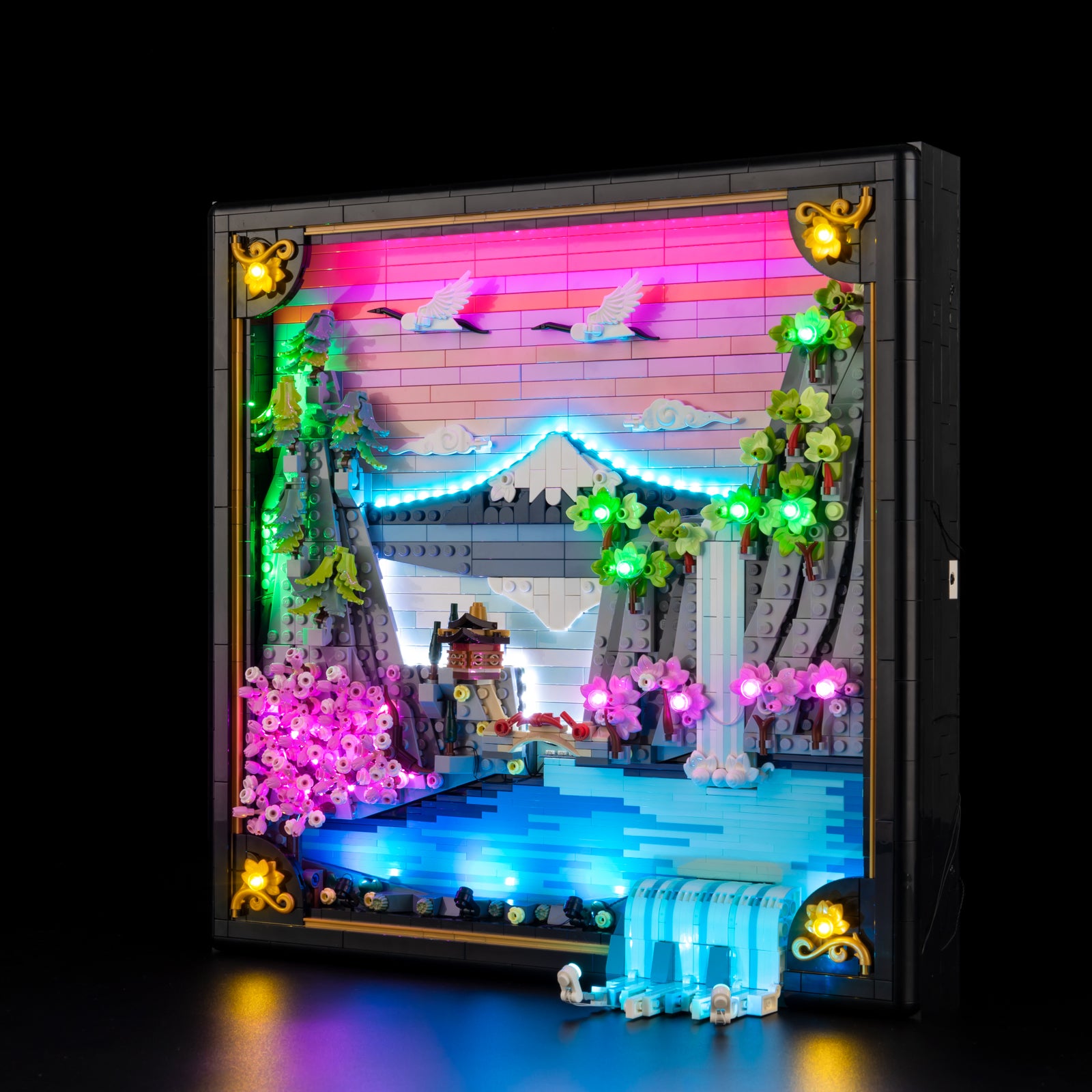 Immerse yourself in calm, color, and craftsmanship with LEGO® Art Japanese Cherry Blossom Landscape 31218, elevated by Game of Bricks Lights for LEGO® to transform this tranquil scene into a glowing work of art.
