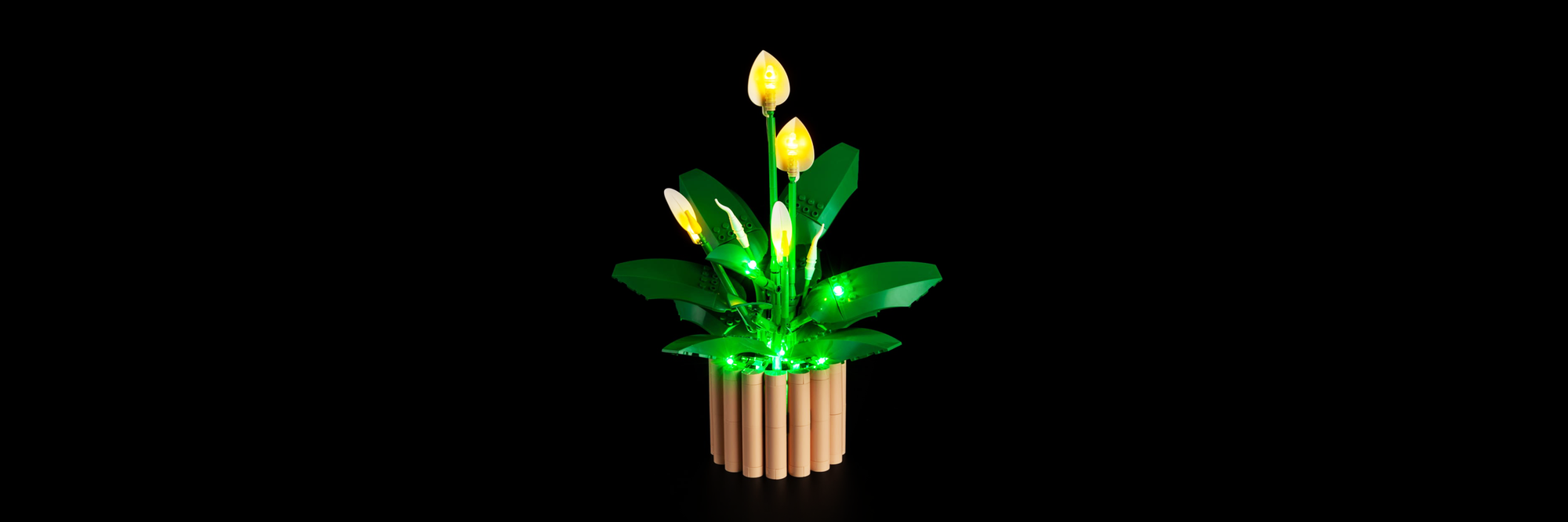 Create a calming centerpiece with LEGO® Botanicals Peace Lily 11504, elevated by Game of Bricks Lights for LEGO® that bring this elegant plant to life with a soft, natural glow.