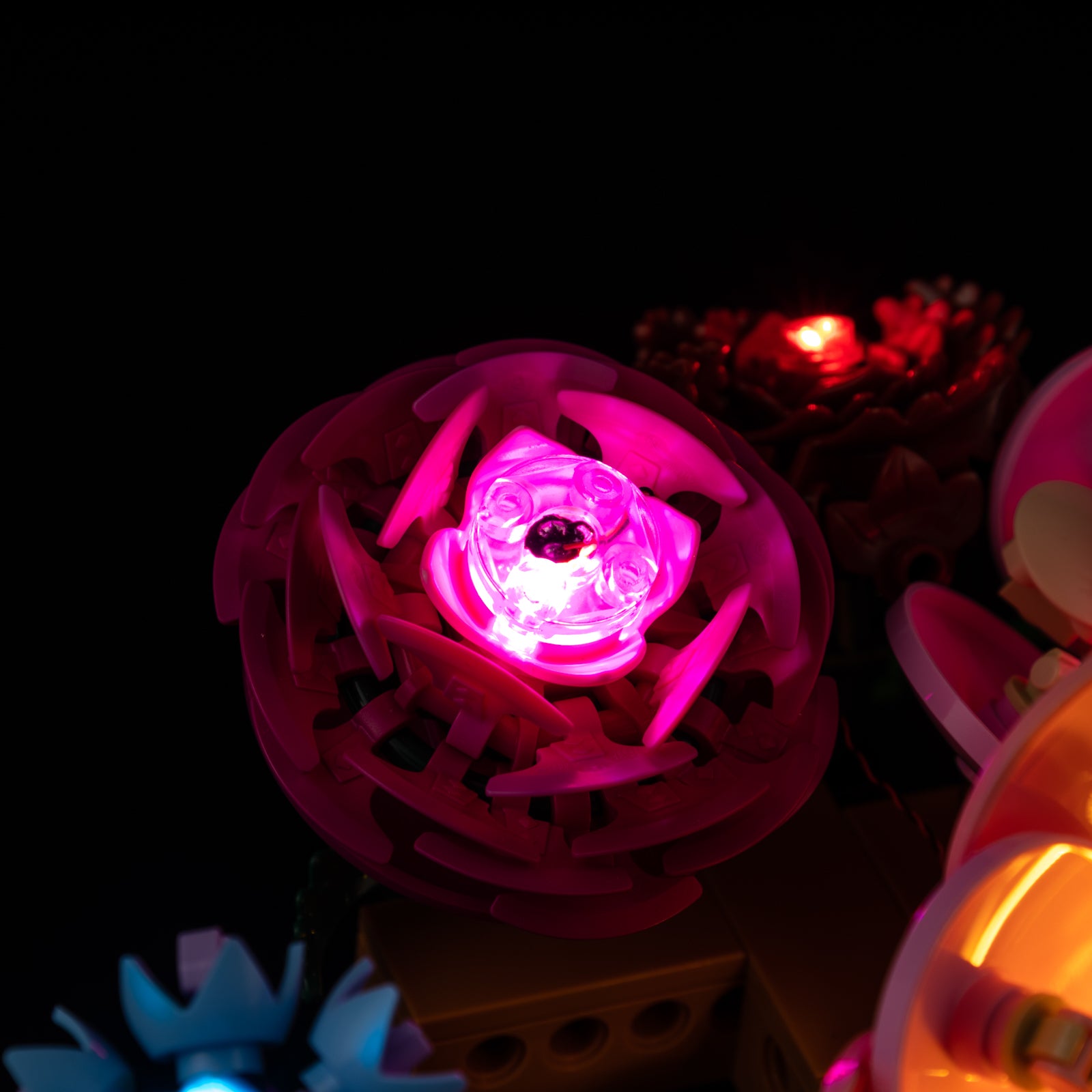 Unleash your inner gardener and illuminate your masterpiece with our premium light kit, specially designed for the LEGO® Botanicals Flower Wall. Whether displayed horizontally or vertically, this vibrant botanical build blossoms into breathtaking floral wall decor — now glowing with life.