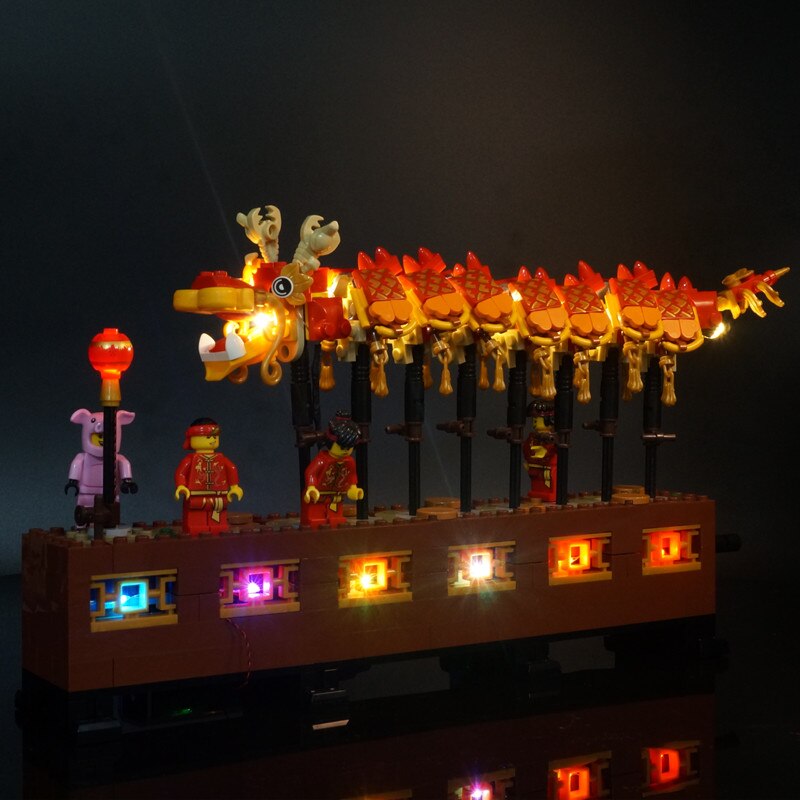 Immerse yourself in the radiant celebrations of the Lunar New Year with the LEGO Dragon Dance 80102. With the addition of LEGO Lights, witness the transformation of bricks into a mesmerizing display, echoing the jubilant festivities of the Year of the Pig.