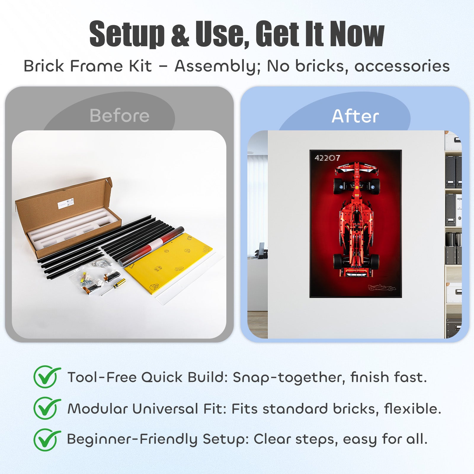 Present the LEGO® Technic Ferrari SF-24 F1 Car 42207 with our Premium Wall-Mount Display Frame, transforming this iconic racing machine into a bold tribute to Ferrari’s relentless pursuit of victory.
