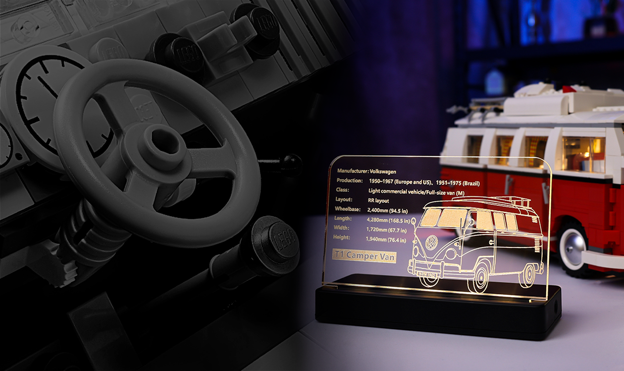 Make your LEGO Volkswagen T1 Camper Van 10220 look mouthwatering while being displayed by using our awesome LED Nameplates.