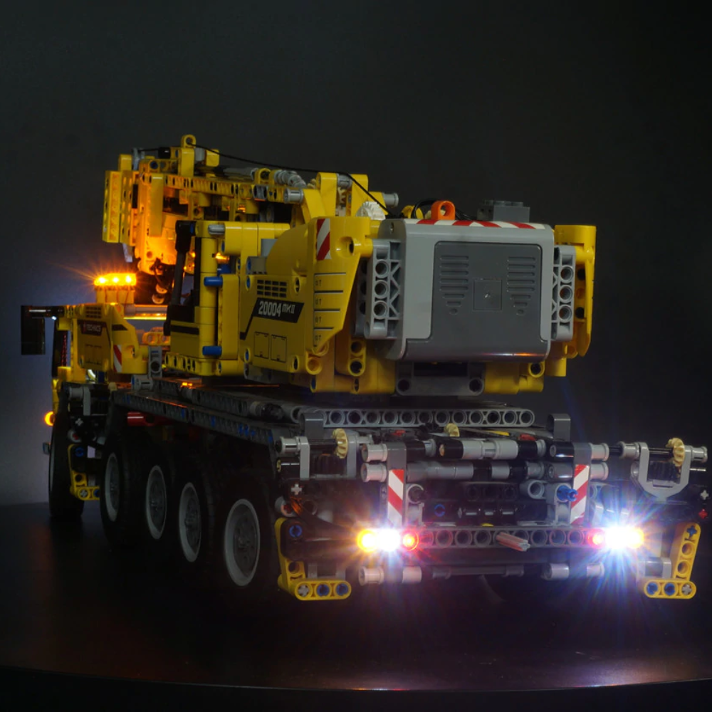 Embark on an engineering odyssey with the LEGO Mobile Crane MK II 42009. When illuminated, this behemoth stands tall, its lights revealing its masterful design and unparalleled functionality, a symbol of construction excellence and the pinnacle of Technic design.