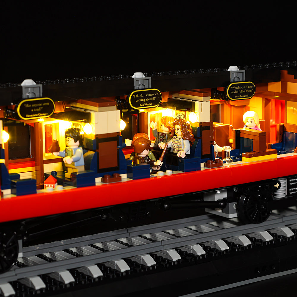The LEGO 76405 Harry Potter Hogwarts Express set comes with 5,129 pieces. The engine has a detailed bottom and a lever on top that makes the train sway like a steam train. A tender vehicle transports the engine's coal supply. The passenger car is divided into three compartments, each reflecting an iconic scenario from the series: when Harry, Ron, and Hermione first meet in the first film; when Professor Lupin rescues Harry from the Dementor in the 3rd film; and when Luna protects Harry from Draco's curse in the sixth film. The model also portrays Platform 934 at King's Cross Station, where adult Harry and Ginny wait with their children, Lily, James, and Albus, in anticipation of Albus's maiden ride aboard the incredible Hogwarts Express. Recreate the magic of Hogwarts with the LEGO Hogwarts Express – Collectors’ Edition 76405 set. Make it classier with our cool LEGO LED Lights.
