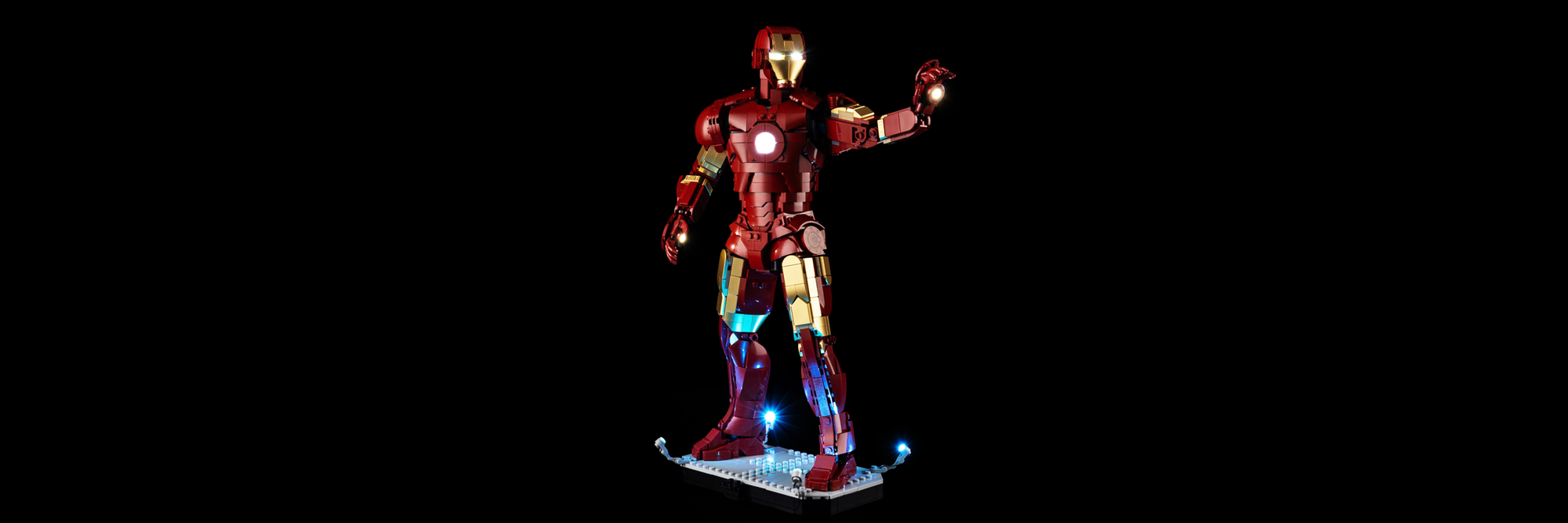 The included minifigure in Mark 3 armor becomes an eye-catching companion piece when lit next to the towering figure. Add atmosphere to any shelf, desk, or collection display.
