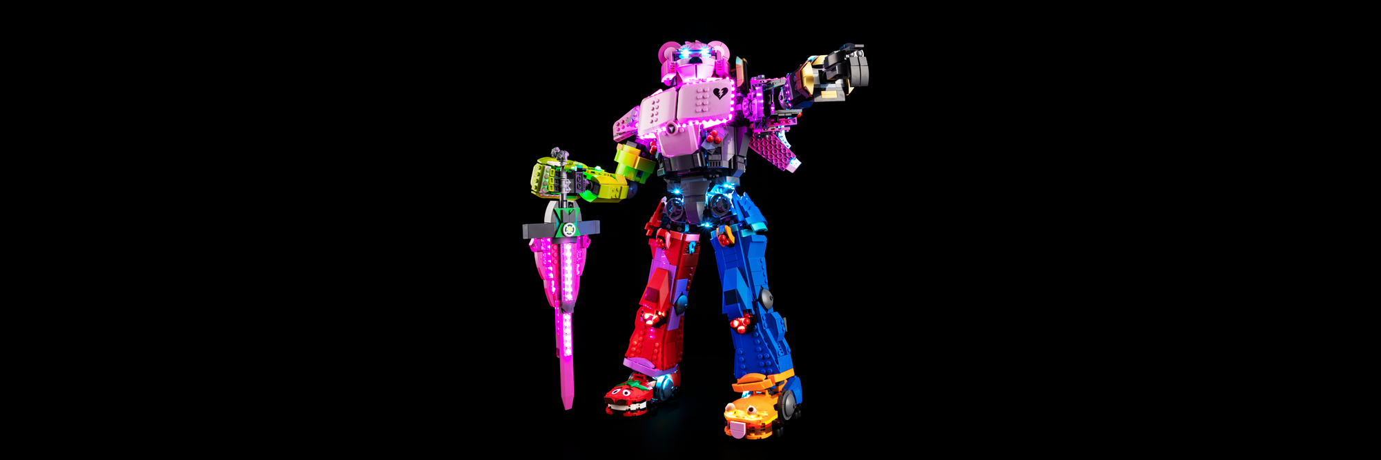 Unleash the full power of your LEGO Mecha Team Leader 77078 with LEGO Lights. From sword to cockpit, let Fortnite’s ultimate mech glow in glory.