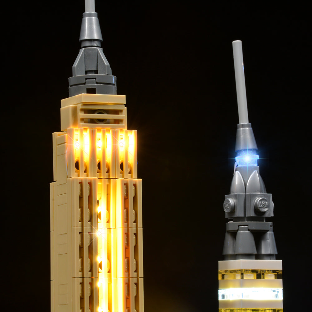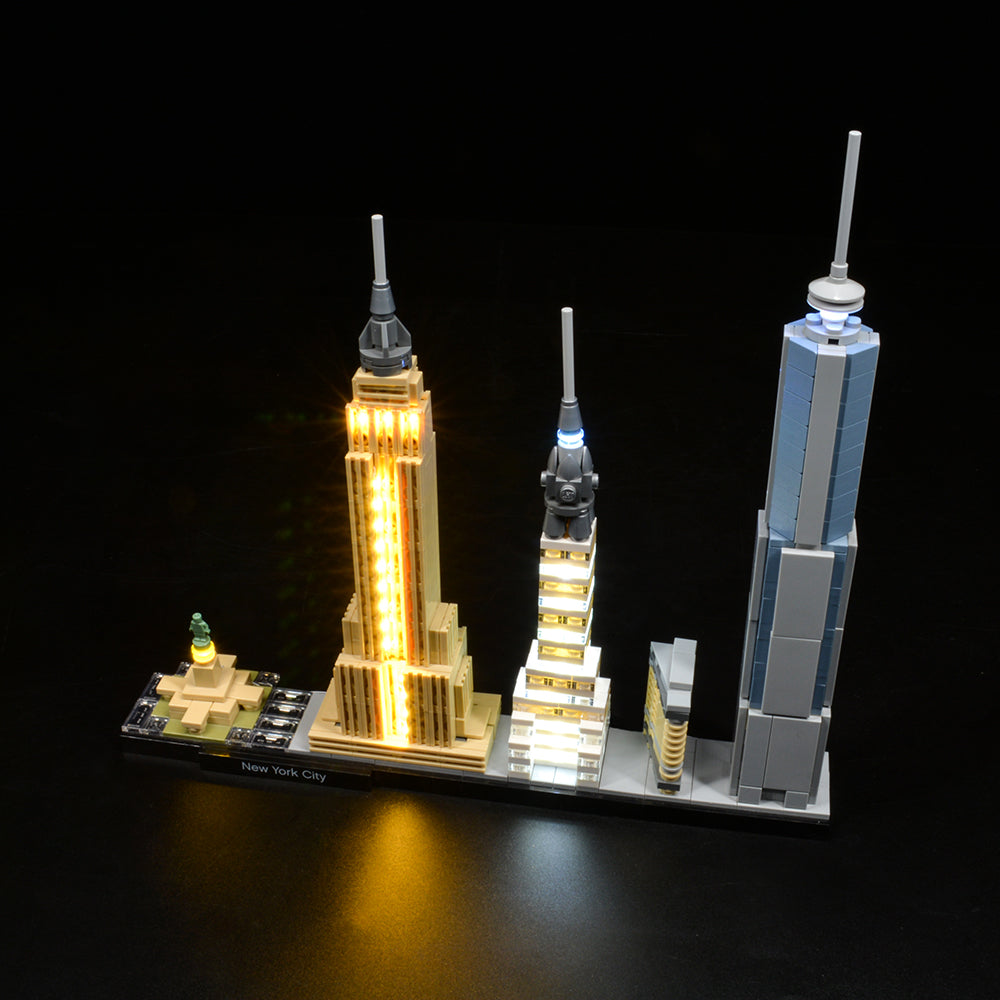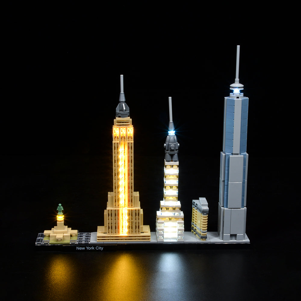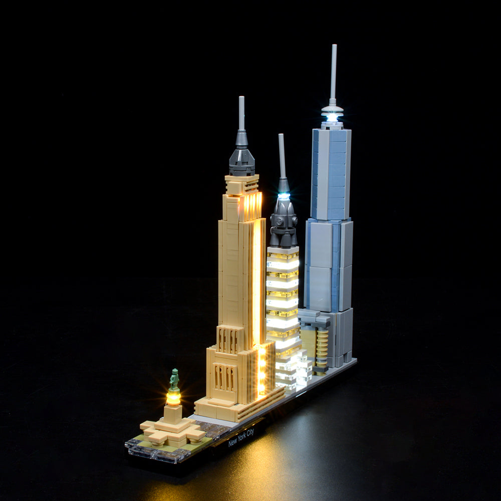 As someone who grew up near New York City, I can say that this set makes this model look more realistic. The changing multicolored LED lights on top of One World Trade Center nicely contrasts to the warm and cold white lights of the other iconic buildings. The cold white lights nicely reflects the Ironbound building.
