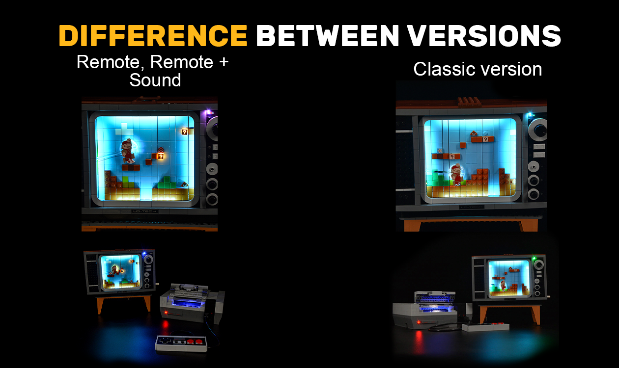 This light kit makes the Nintendo Entertainment System set shine. The console and TV glow beautifully, and the lighting effects bring out the retro details perfectly. It really feels like Mario has jumped right into the display!