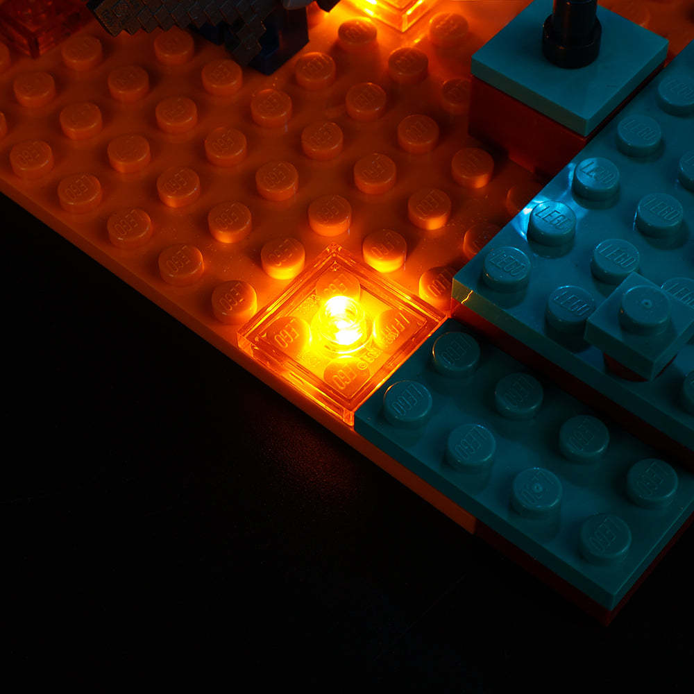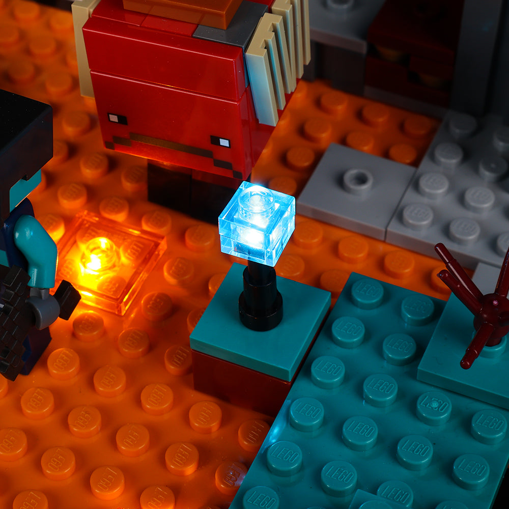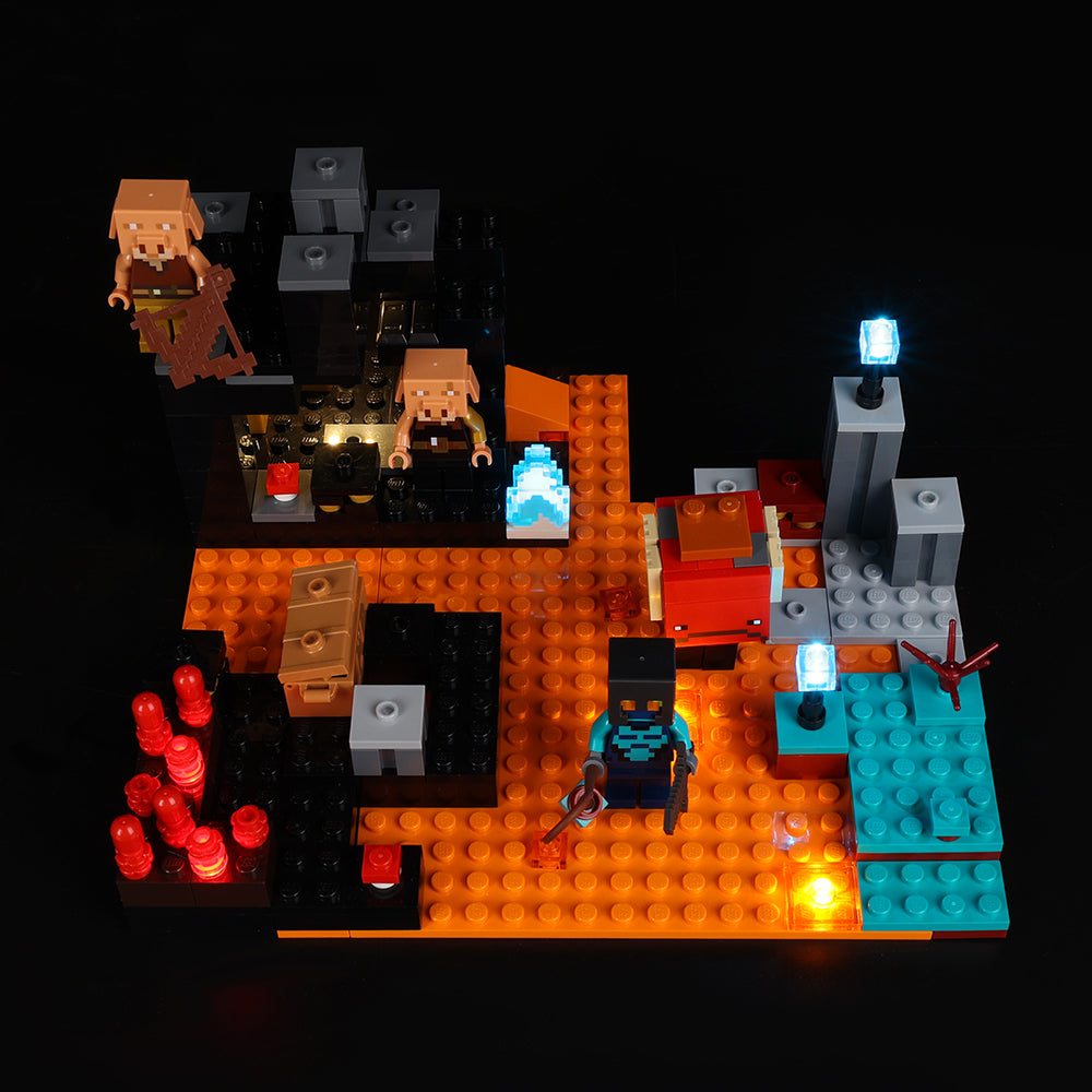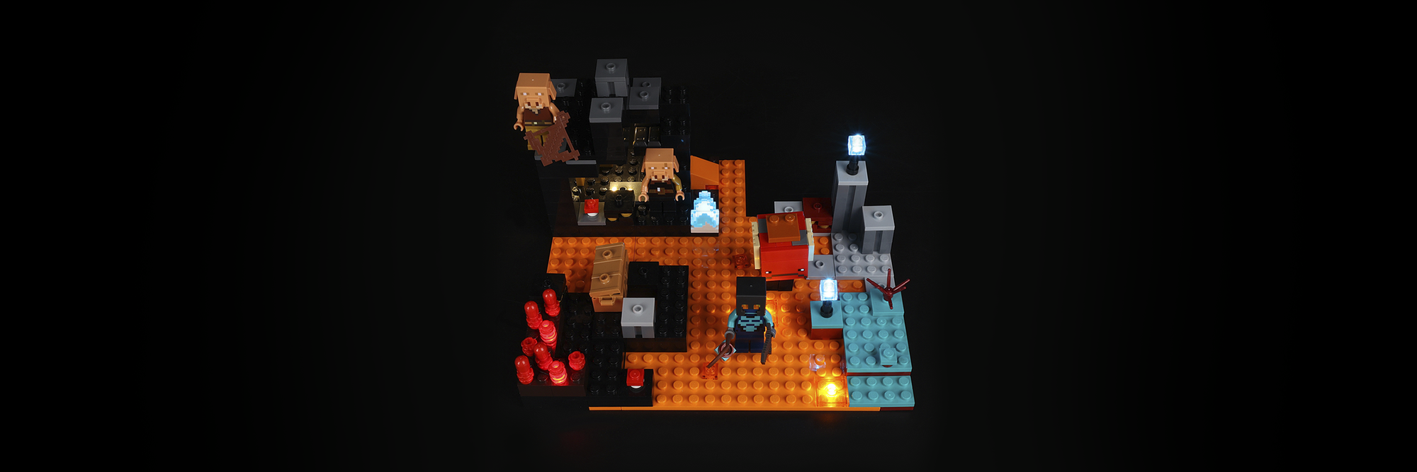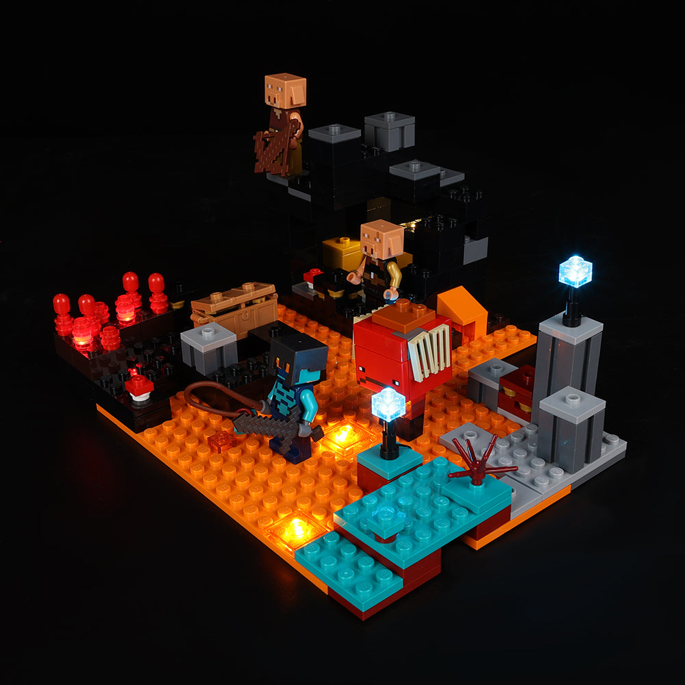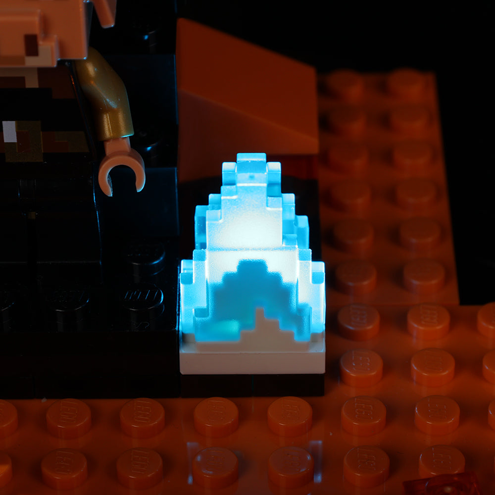 Venture into the blazing heart of the Nether with LEGO The Nether Bastion 21185. As players brave this treacherous terrain, our dynamic LEGO Lights add a vivid and fiery glow, immersing you fully into the Minecraft® world.